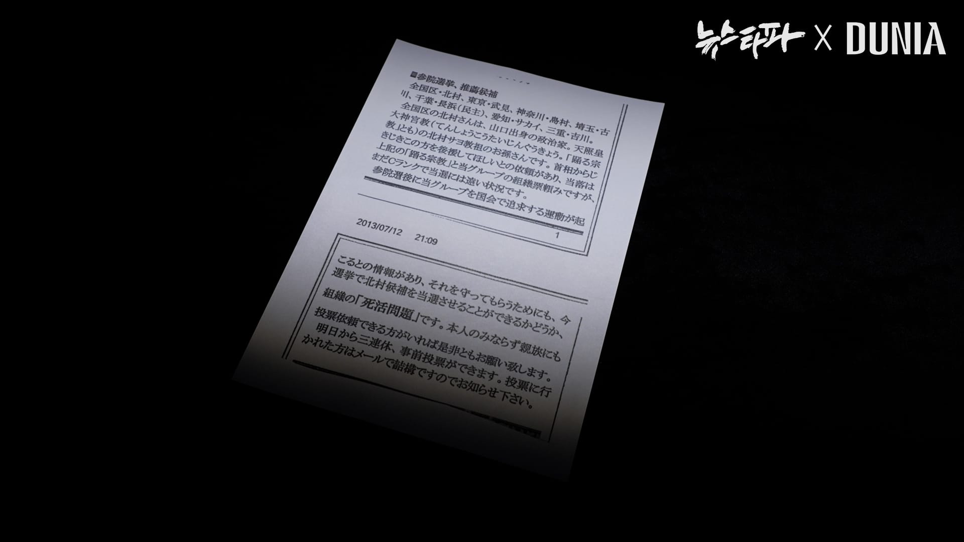 공문엔 표를 몰아줘야 할 자민당 소속 후보들의 이름이 적시됐다. 조직적인 표 지원의 대가가 무엇인지도 공문에 담겨 있었다. 일본 국회에서 논의 중이던 통일교 제재 법안의 통과 방해였다.