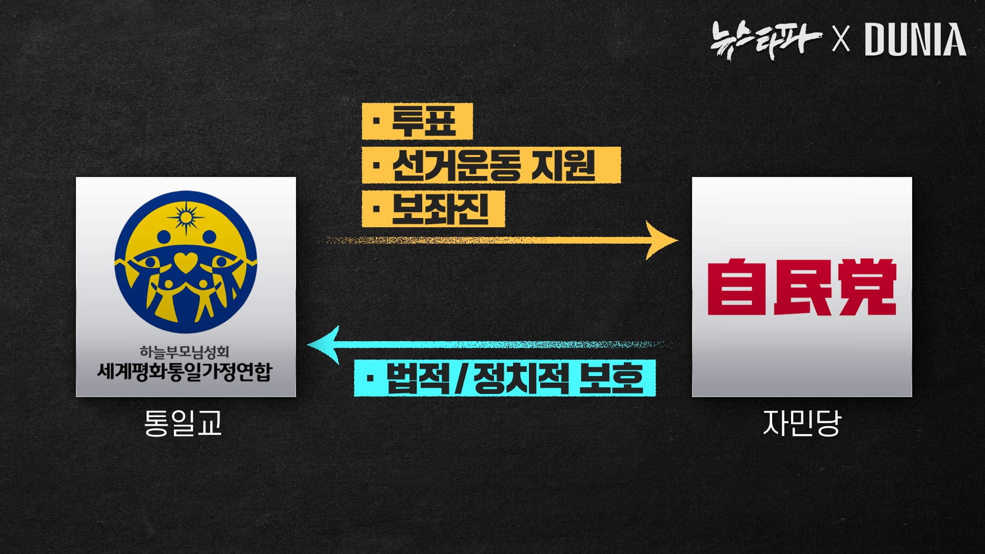 세계평화통일가정연합(이하 통일교)과 윤석열 정치권력이 민주 국가의 상징인 투표를 매개로 대한민국 헌정 사상 초유의 정교유착 게이트를 빚었다는 사실이 계속해서 드러나고 있다. 그런데 통일교가 이와 완전히 같은 정교유착 모델을 이미 약 10년 전에 일본에서 성공적으로 정착시킨 사실이 두니아·뉴스타파 공동취재 결과 확인됐다.