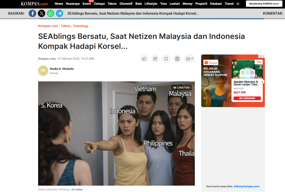 온라인 싸움이 커지자 현지 주류매체도 이 문제를 다뤘다. 인도네시아 최대 일간지 ‘콤파스(Kompas)’는 “동남아 형제들 뭉쳤다, 말레이·인도네시아 네티즌들 한국에 맞서 '한마음'”이라는 제목의 기사를 통해 논란의 전말을 소개했다.