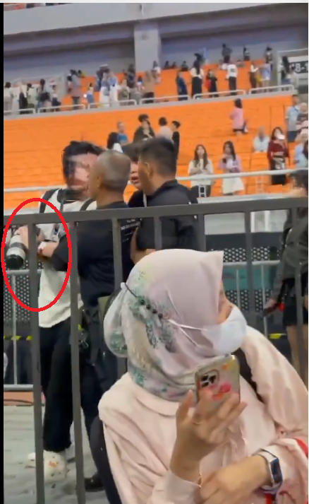 소셜미디어 X에 올라온 한 포스팅을 보면 DSLR 카메라를 든 한국인 관객과 현지 관객이 말다툼을 벌이다 보안 요원에게 끌려나가는 모습이 나온다.